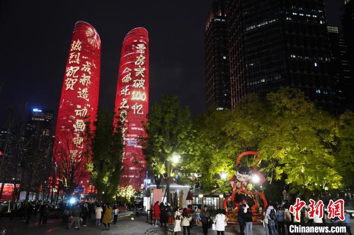 2月13日晚,寰球在位于四川成都交子大路的哪吒雕饰前拍照贪恋。当晚,成都天府双子塔亮灯,庆祝电影《哪吒之魔童闹海》票房(含预售)达100亿元东说念主民币。中新社记者 安源 摄